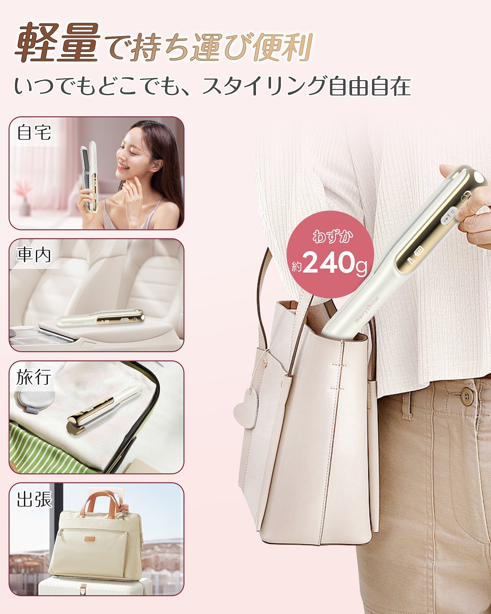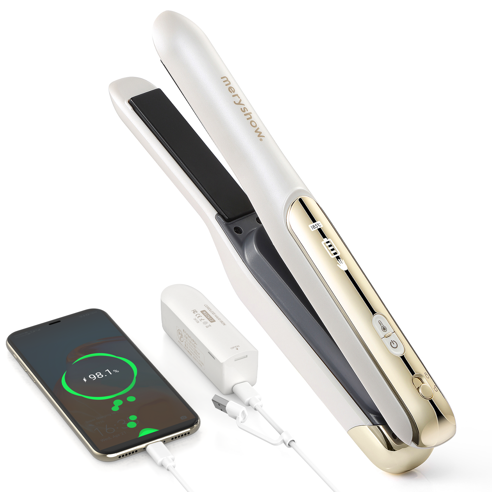 【充電式/機内持ち込み可】コードレスヘアアイロン MS2612|脱着式バッテリー・海外電圧対応|3段階温度調節(160℃/180℃/200℃)|急速加熱|コンパクト設計|旅行・外出用|前髪ケア|全髪質対応|男女兼用