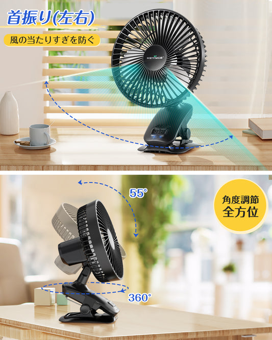 【Keynice】卓上とクリップ扇風機 首振り 充電式 風量3段階+リズム 静音 KN-618