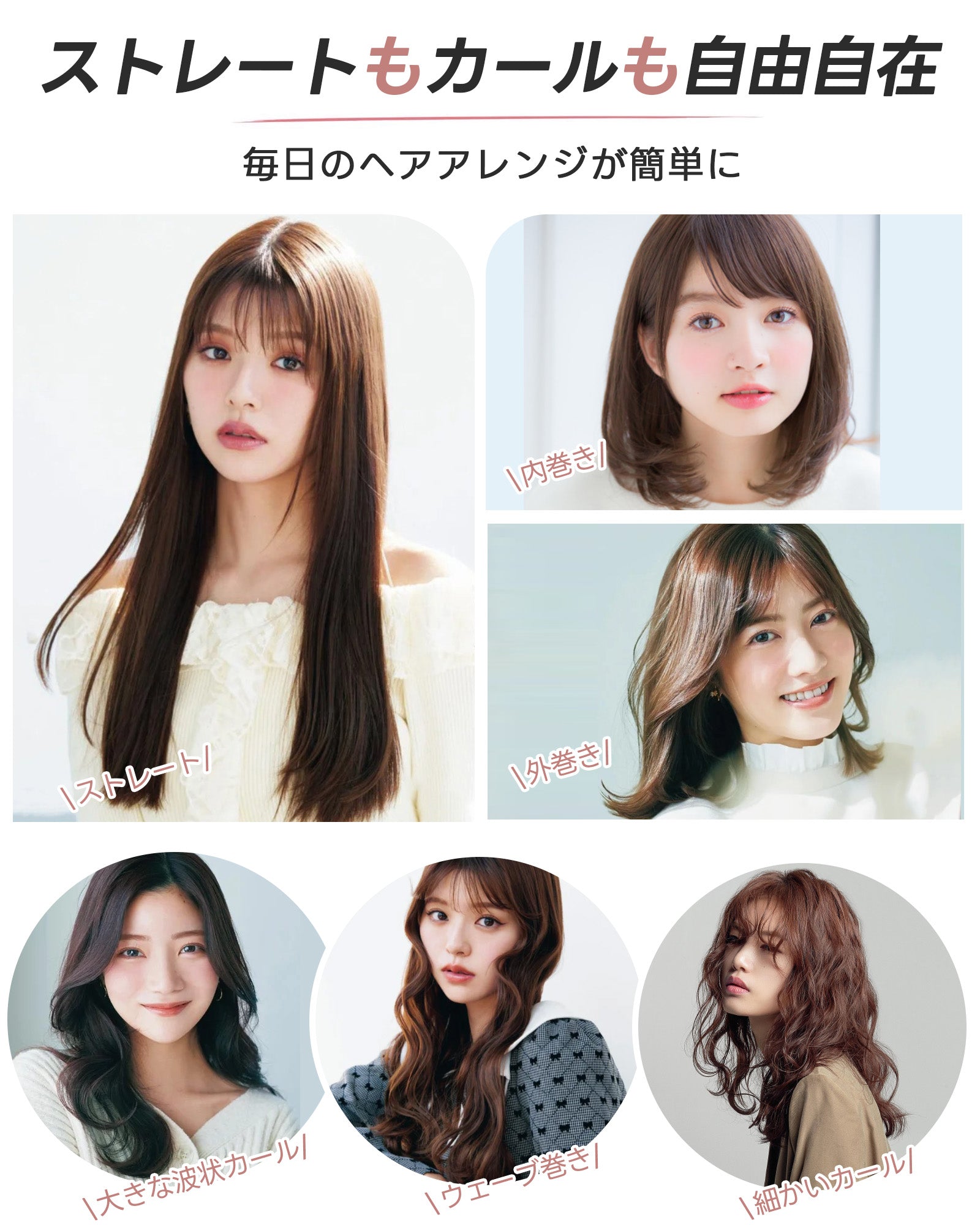 セラミックコーティングプレート:滑りが良く、髪に優しいセラミックコーティングを施したプレートを採用。熱を均等に伝え、髪の引っかかりを軽減し、滑らかなスタイリングを実現。さらに、髪の水分を保持し、艶やかなストレートヘアをキープします。