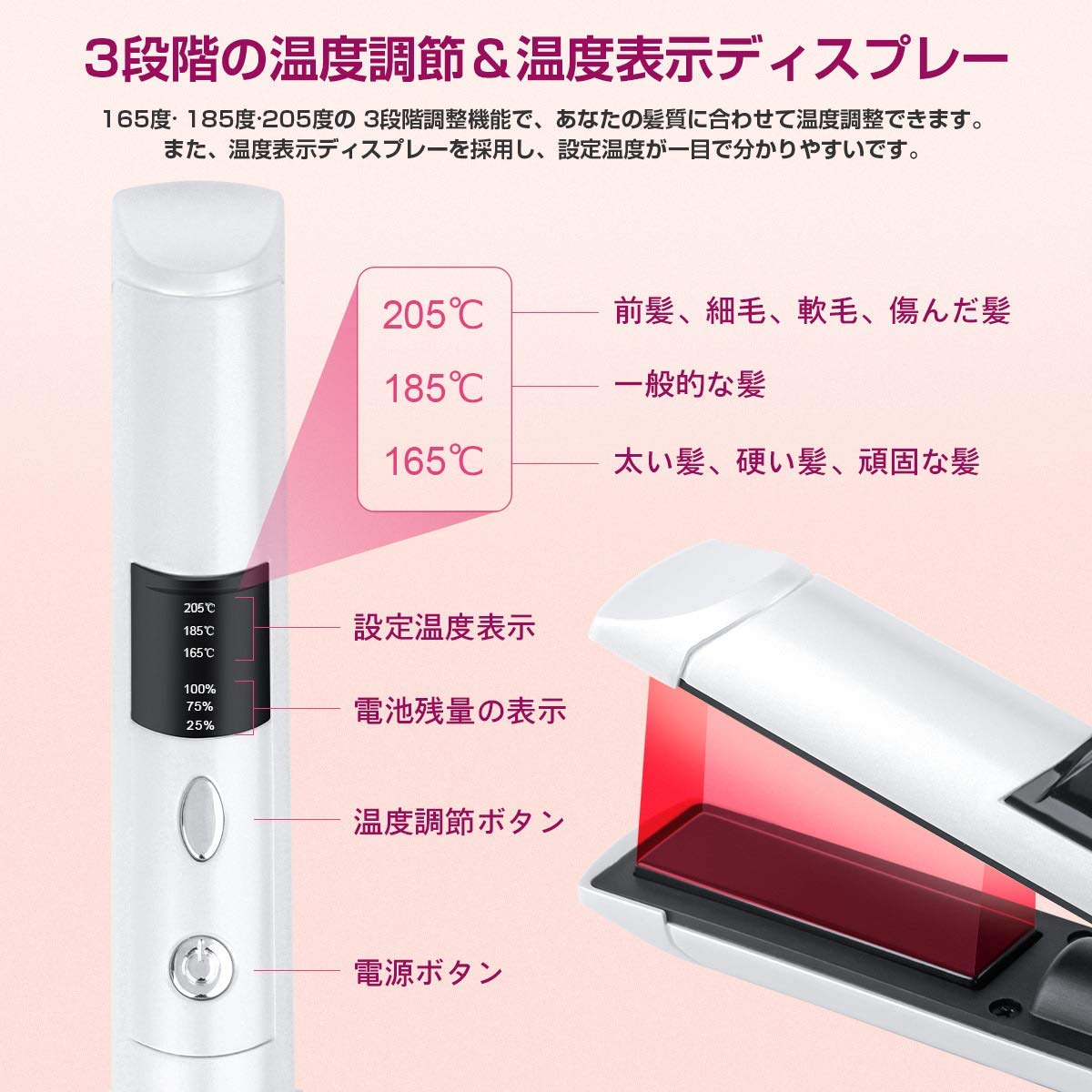 - [3-level temperature adjustment to suit your hair type] With 3-level adjustment function of 165°C, 185°C, and 205°C, you can adjust the temperature according to your hair type. You can change the setting to a lower temperature for soft hair and a higher temperature for hard hair, so you can set the optimum temperature for your hair. Of course, you can also choose between loose curls at low temperatures and straight straight at high temperatures. In addition, a temperature display is used, making it easy to understand the set temperature at a glance.