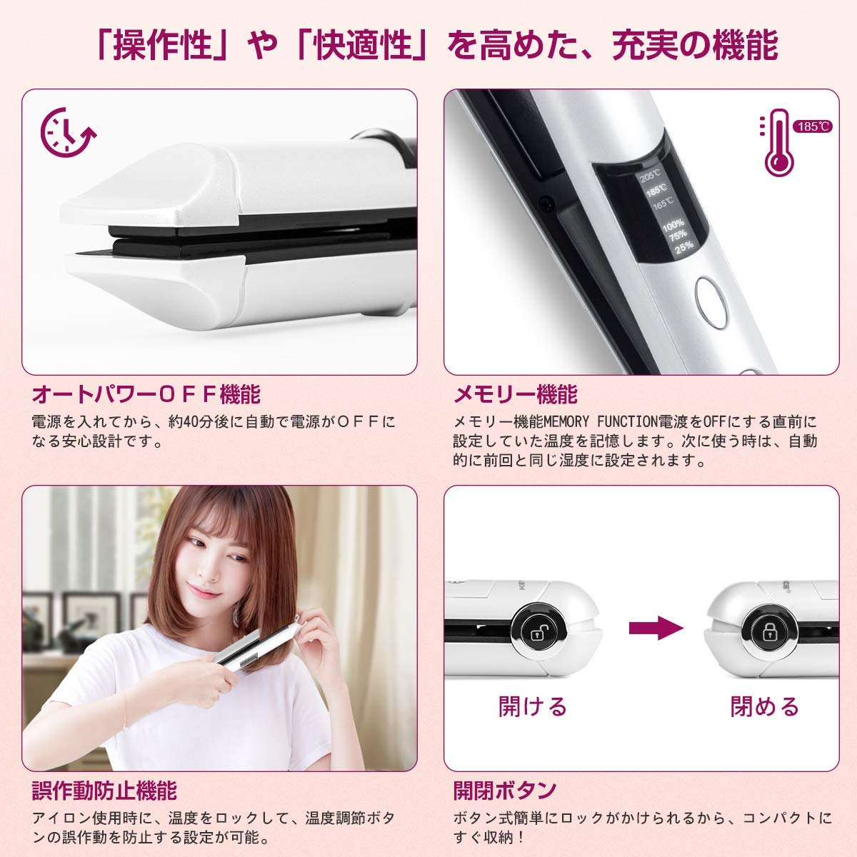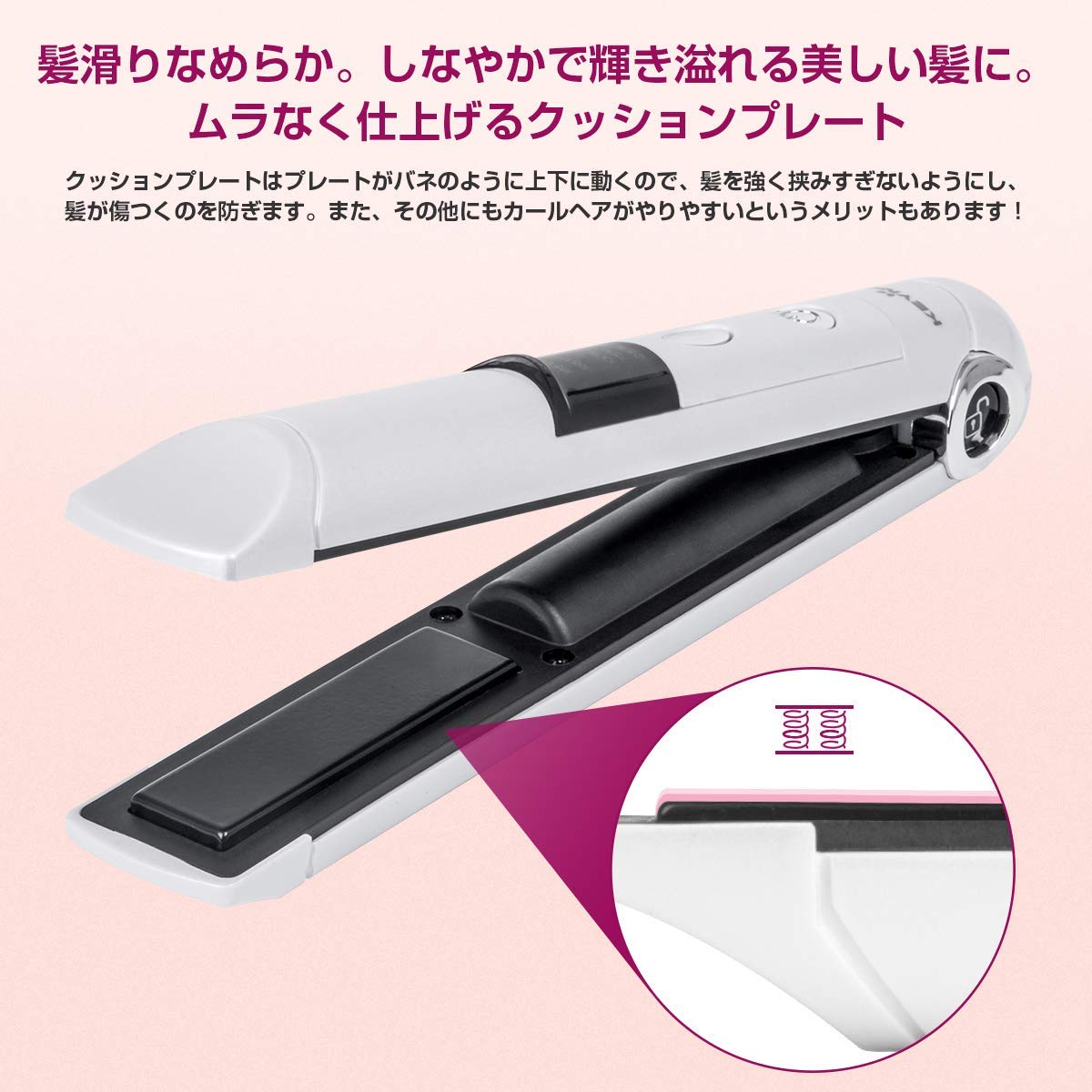 - [2 in 1 specification & gentle on hair] You can curl and straighten with this one without having to prepare two types of curling irons. This curling iron is recommended for those who want to enjoy curly hair and straight hair equally. A cushion plate is used, and the plate moves up and down like a spring, so it prevents hair from being pinched too tightly and damaged. In addition, there is also the merit that curly hair is easy to do.
