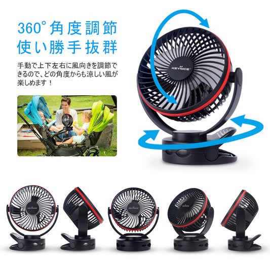 Clip and Tabletop Fan, USB Rechargeable, Quiet, 4 Levels of Air Volume, LED Light, 360 Degree Rotation, 13.6cm KN-871
