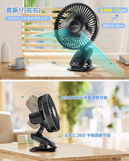 [Very Popular] Clip and Tabletop Fan, Oscillating Head, Rechargeable, 3 Levels of Air Volume + Rhythm, Timer Function KN-818