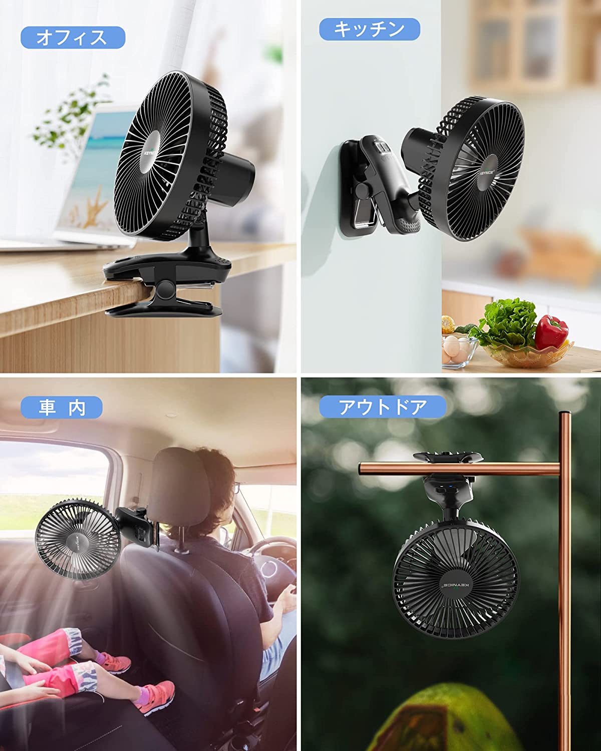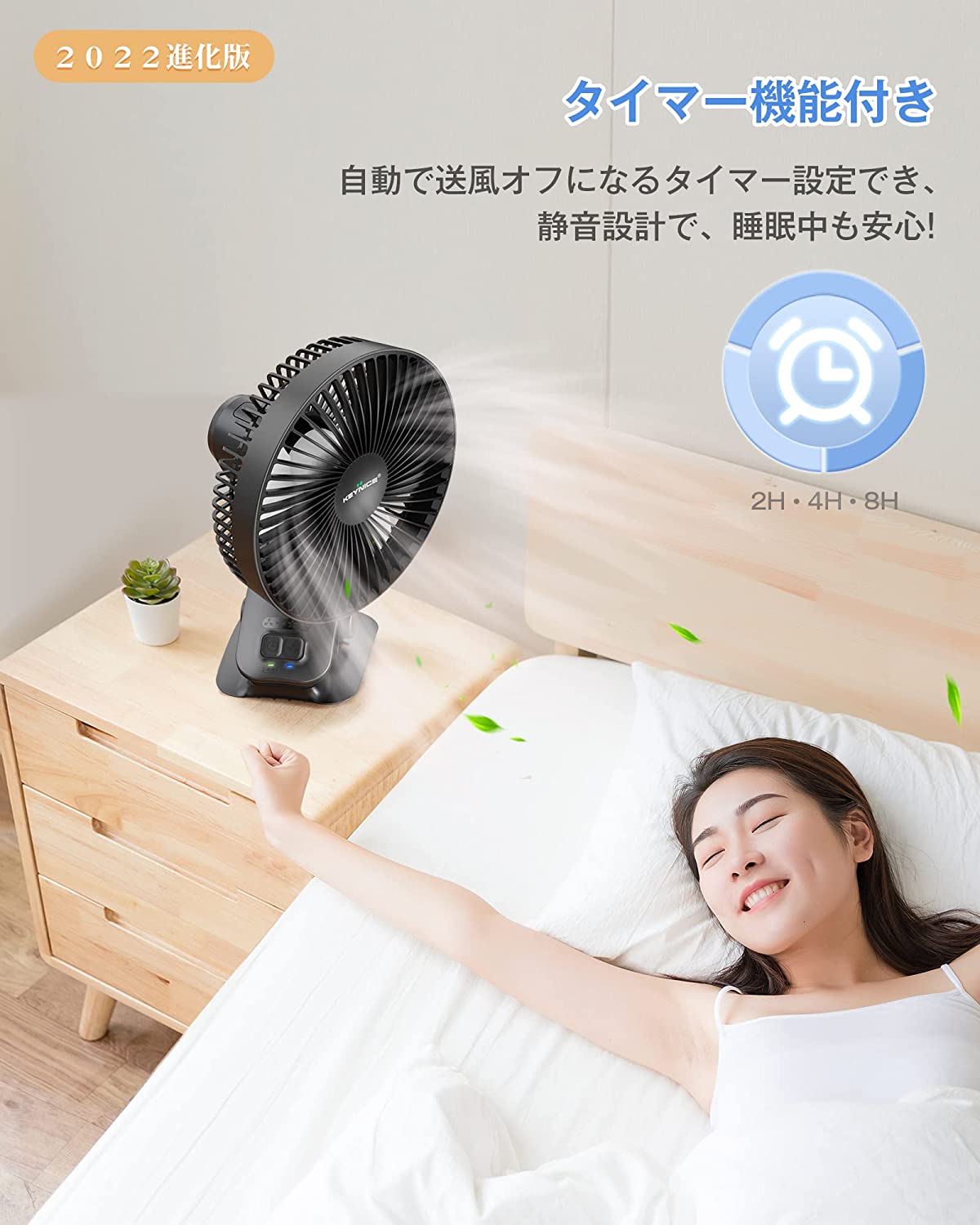 - [Rechargeable fan with timer function] The advanced clip fan is equipped with a timer function, and you can set the time in 3 stages: 2 hours, 4 hours, and 8 hours. It prevents the wind from blowing too much while you are sleeping or working, and automatically shuts off when the set time elapses, so you can use it with peace of mind without worrying about forgetting to turn it off when you go to bed or go out.