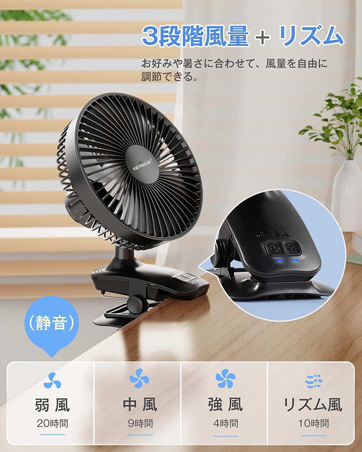 ![[Very Popular] Clip and Tabletop Fan, Oscillating Head, Rechargeable, 3 Levels of Air Volume + Rhythm, Timer Function KN-818](http://www.keynice.com/cdn/shop/products/KN-818-WH-00.jpg?v=1686914136&width=1445)