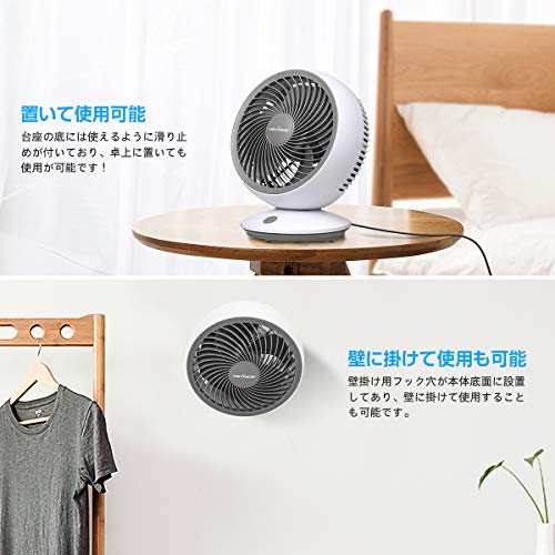 - ❉彡 [2-way design for tabletop and wall hanging] The base of the circulator has a non-slip surface, so it can be used even when placed on a tabletop. A hook hole for wall hanging is installed on the bottom of the main unit, so it can also be used by hanging it on the wall. The height of the main unit is approximately 23 cm, the weight is approximately 600 g, and it is lightweight and compact, making it very easy to carry. Although it has a small body, it is powerful and can deliver wind to a long distance.